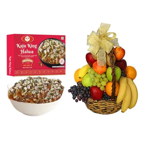 Kaju King Halwa from Mohanlals Mithaiwala with Fresh Fruit Basket