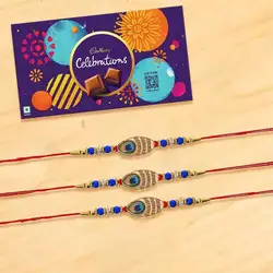 Celebrate the beautiful bond of Raksha Bandhan with our Trio Kundan Rakhi N Nutty Treats Hamper. This elegant gift includes three stunning Kundan Rakhis by Rakhi Sutra (SET3-01) that symbolize love and protection. Complementing the rakhis is a variety of Mewa Delight nuts — cashews, almonds, raisins, and pistachios (100g each) — wrapped in love and care. These premium nuts come arranged in a charming, reusable basket, perfect for adding a touch of luxury to the festivities. Also included in the hamper are complimentary roli tika n chawal and a message card, ensuring that all traditional rituals are joyfully observed. This curated hamper is an ideal fusion of tradition and taste, perfect for making Raksha Bandhan celebrations memorable and heartfelt.