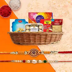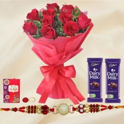 Celebrate Raksha Bandhan with a special gift set featuring a stunning Kundan Rakhi by Rakhi Sutra, symbolizing the cherished bond between siblings. Indulge in 500g of delectable Kaju Katli, a traditional Indian sweet that adds sweetness to the festivities. Complete the traditional ceremony with complimentary Roli Tika N Chawal, and express your heartfelt sentiments with a complimentary message card included free of charge. This thoughtful combination of elegance, sweetness, and tradition is the perfect way to honor and celebrate the unique relationship between siblings on this auspicious occasion of Raksha Bandhan.