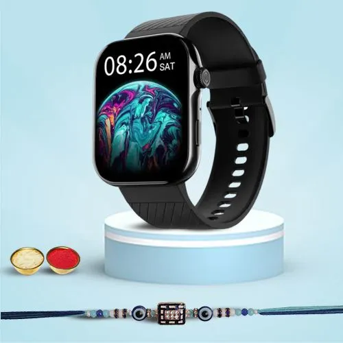 This Gift Hamper contains: • An Evil Eye Rakhi by Rakhi Sutra (EVD0475) • Noise ColorFit Ultra 3 BT Calling Smartwatch (Jet Black) • Complimentary Roli Tika N Chawal • Complimentary Message Card with Free Rakhi