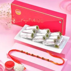 Add a touch of royal charm to your Raksha Bandhan celebration with this exquisite Peacock Kundan Rakhi (SAJ2914). Made from premium metal in a gleaming golden color, this designer Rakhi features a classic peacock motif that signifies beauty and blessings. Ideal for brothers, it comes as a set of one and is accompanied by all the essentials for the rituals—complimentary Roli, Tika, and Chawal. To make your gesture even more special, a free Rakhi greeting card is included for your personal message. Celebrate the festival with elegance, tradition, and love—all in one beautifully packaged set.