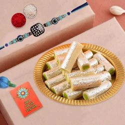 Make Raksha Bandhan truly memorable with this meaningful Rakhi combo, perfectly blending tradition with taste. The hamper includes three Rudraksha Rakhis, revered for their spiritual significance and believed to bring peace and protection to the wearer. Accompanying the rakhis is a classic Indian sweet—Haldiram’s Gulab Jamun (1 Kg)—rich, soft, and soaked in delicious syrup, making it a festive favorite. We’ve also added complimentary Roli Tika and Chawal, essential for the traditional rakhi tying ceremony, and a free message card to add a personal, loving touch to your gift.