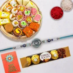 Celebrate the sacred bond of love and protection with our Sweet Delight Rakhi Combo, featuring a delightful assortment of hand-rolled Besan Laddoo (250g) made from the finest ingredients to melt in your mouth with every bite. This set includes an elegant duo of AD Rakhi pieces, beautifully crafted to symbolize the strength of your sibling bond. Alongside, youll find complimentary Roli, Tika, and Chawal to complete the traditional rituals of Raksha Bandhan. A thoughtful message card is also included to express your heartfelt wishes and make the celebration even more special.