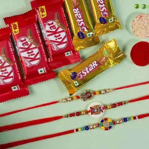 To sweeten the celebration, we have included three scrumptious KitKat and Cadbury 5 Star chocolate bars. Indulge in the smooth and creamy taste of these popular confectioneries while cherishing the joyous moments with your sibling. These delectable treats are sure to delight any chocolate enthusiast and make the Raksha Bandhan festivities even more enjoyable.