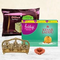 Click to deliver this Auspicious Diwali Poojan Special Laxmi Ganesh Ji with Marble Choki (size: 6x4 in), designer Pooja Thali n Free Subh Labh Wall Sticker that delivers happiness instantly when unwrapped.