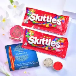This gift consists of: • Kaju Katli (200g) • Mix Dry Fruits Trail (100g) • Roli Chawal • Bhaidooj Card • Kalava