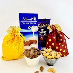 Indulge in a medley of traditional Indian sweets with our Festive Sweets Bundle. Its an assortment crafted to delight your taste buds with its luscious flavors. This extravagant pack features 1Kg of soft, spongy Rasgulla that melts in your mouth, paired with 1Kg of sumptuous, syrupy Gulabjamun, perfect for treating your senses. To add a touch of richness, weve included 200gm of the much-loved Kaju Katli, made with premium cashews for an irresistible bite. Ideal for sharing with friends and family during celebrations, or simply enjoying as a sweet treat after meals, this collection promises to bring joy and indulgence with every piece.