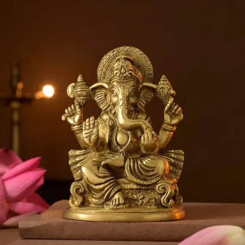 This is a gift of: • Sitting Ganesha Brass Idol (MB-3071) • An Elegant Gift Box