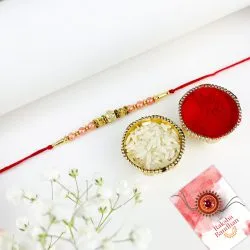 Show your sibling just how much they mean to you with this charming gift set, featuring a Traditional Meenakari Stone Rakhi, along with Roli Chawal and a personalized Rakhi Wishes Card to convey your feelings.