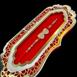 This is a gift of : •Set of 2 Elegant Rakhi •Complimentary- Roli/Chawal(tilak) •Complimentary- Rakhi Good Wishes Card