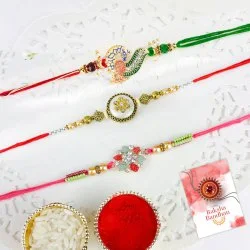 This gift consists of: • Kaju Katli (200g) • Cashew (100g) • 2 Krishna Rakhi • Complimentary Roli Chawal • Complimentary Rakhi Wishes Card with your Message