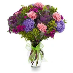 Surprise your special ones by sending this Merry Morning with Alstromeria and Carnations basket and spread love and happiness around. This flower gift basket contains: 1. Colorful Carnation Variety 2. Alstroemeria N Button Poms 3. A Clear Glass Vase 4. Vase measures 8in H x 4in D 5. A Greeting Card