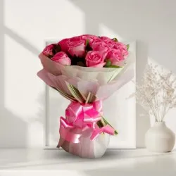 Brighten someone’s day with our Vibrant Roses Harmony Bouquet! This stunning arrangement features two radiant red roses, symbolizing love, alongside cheerful yellow roses that bring a sunny disposition. The unique aqua pink roses add a touch of whimsy, while the classic white roses represent purity and peace. Finished off with green asparagus fillers for a touch of greenery, this bouquet is wrapped in elegant red non-woven tissue. Perfect for birthdays, anniversaries, or simply to say I care, it’s a delightful gift that will leave a lasting impression.