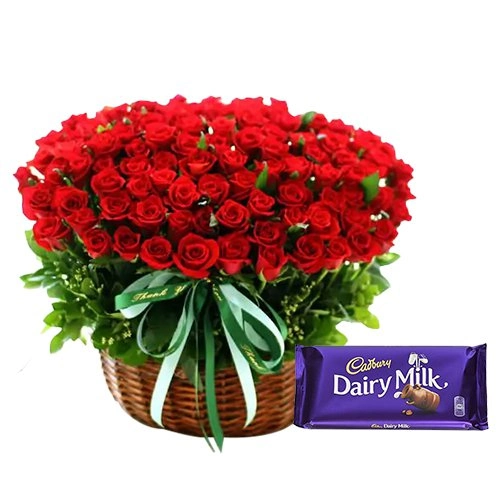 2. 100 Exclusive Dutch Red Roses Arrangement with Cadburys Chocolate