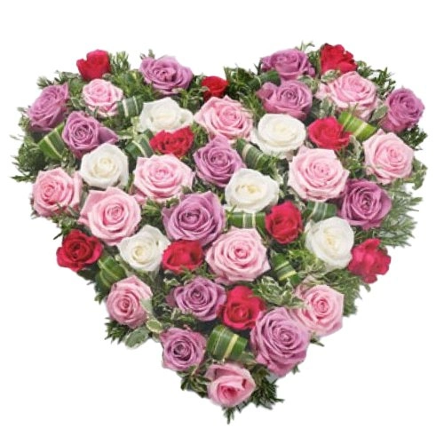 Heart Shaped Arrangement of 51 Roses. (Rose Color : Multi Coloured)